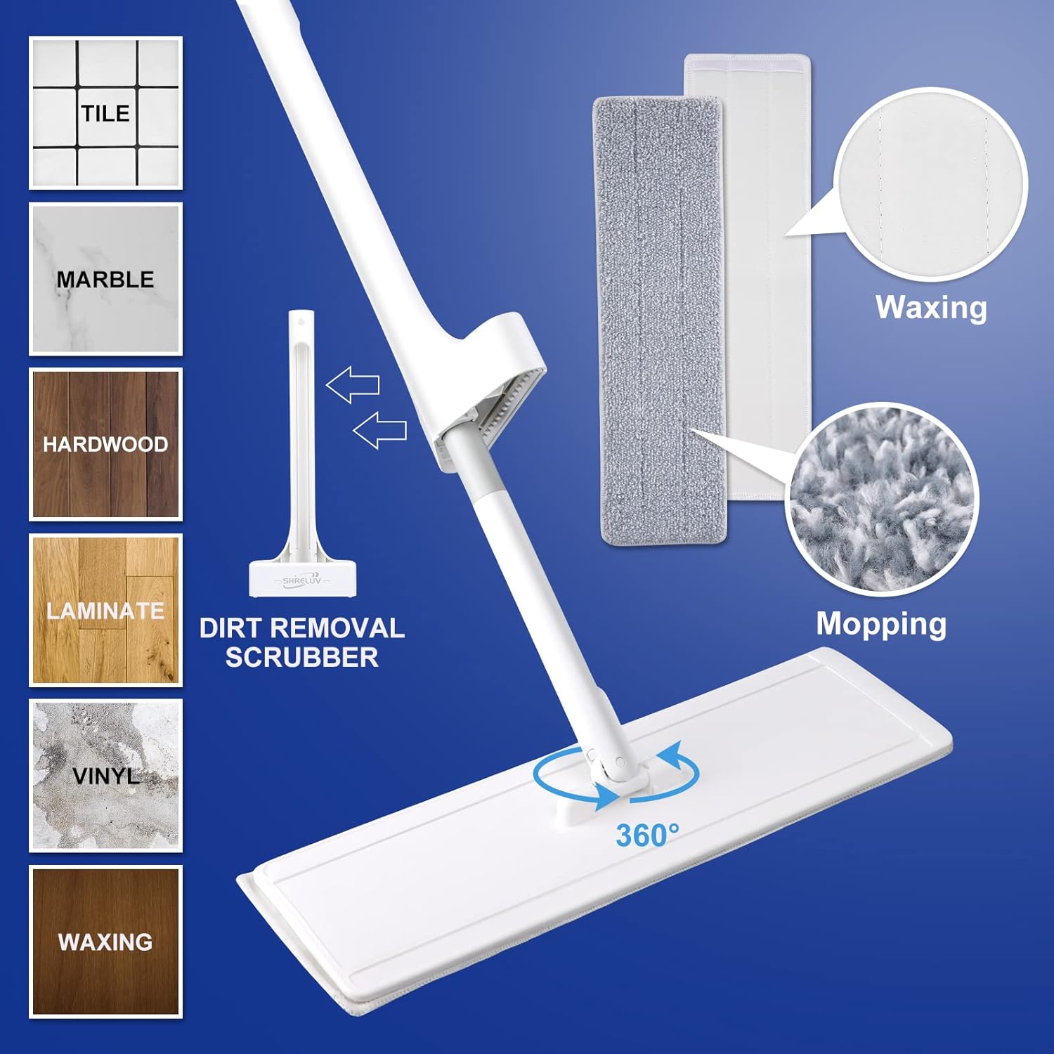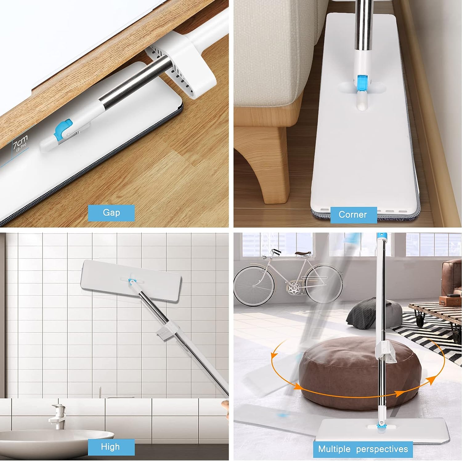 - HUMANIZATION DESIGN :- Stop straining your back, the handle length of the microfiber mop is 52 inches, You don't have to bend down, keep upright and enjoy a relaxed and pleasant cleaning work.360 rotatable mop head helps cleaning furniture, cabinets and other hard to reach areas. Lightweight design for dusting on walls and mopping under sofas .
