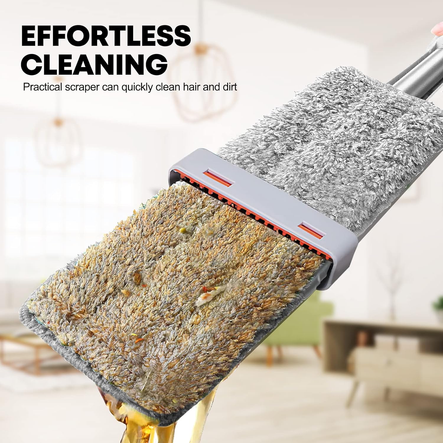 - MACHINE WASHABLE :-The flat mop is equipped with 4 washable replacement pads, which can be reused, cleaned, refilled and replaced. The mop pad can be easily attached to the fixed Velcro of the mop head, and can be removed and cleaned quickly and easily.