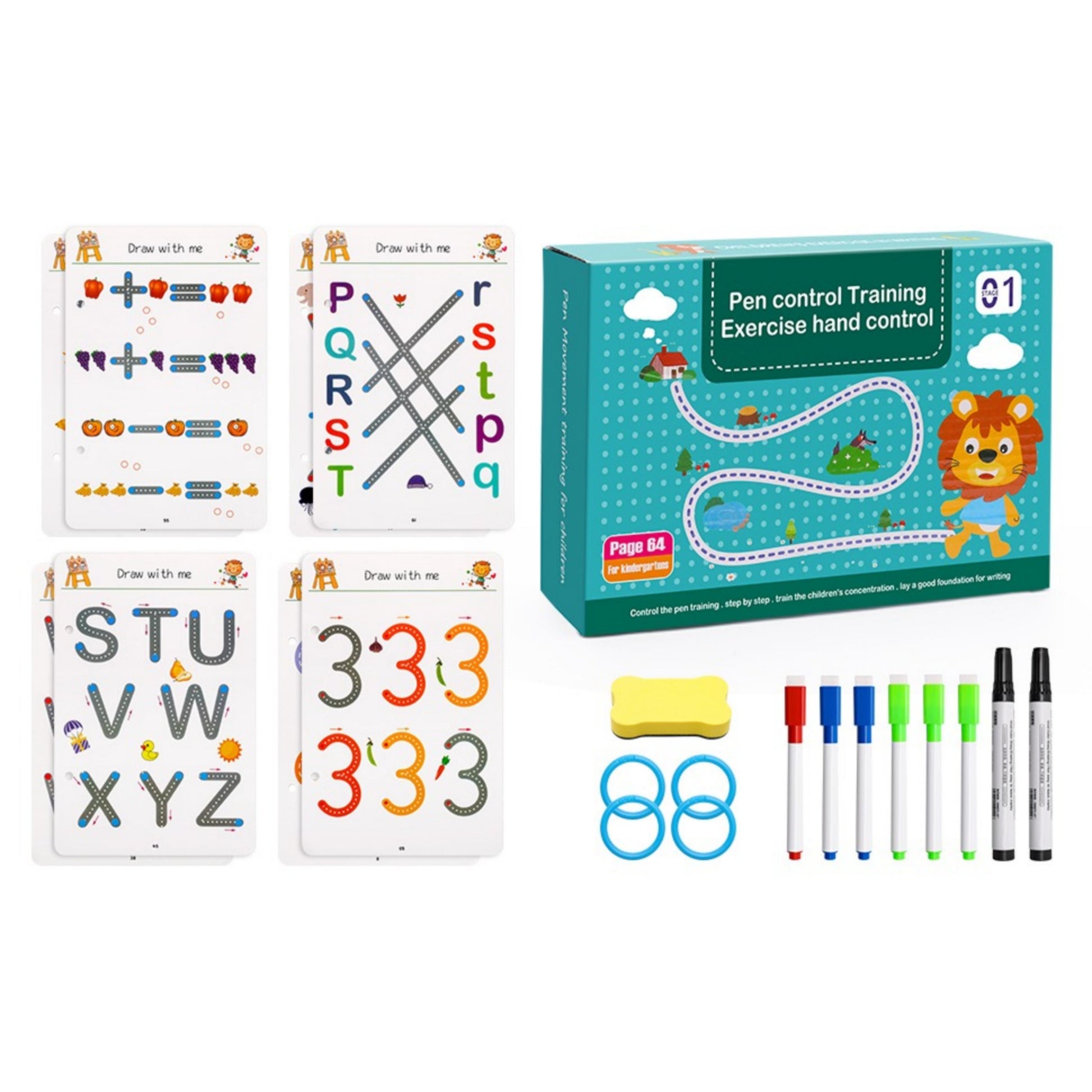 64 Pages Reusable Tracing Line Book For Improve Kids Hand Writing