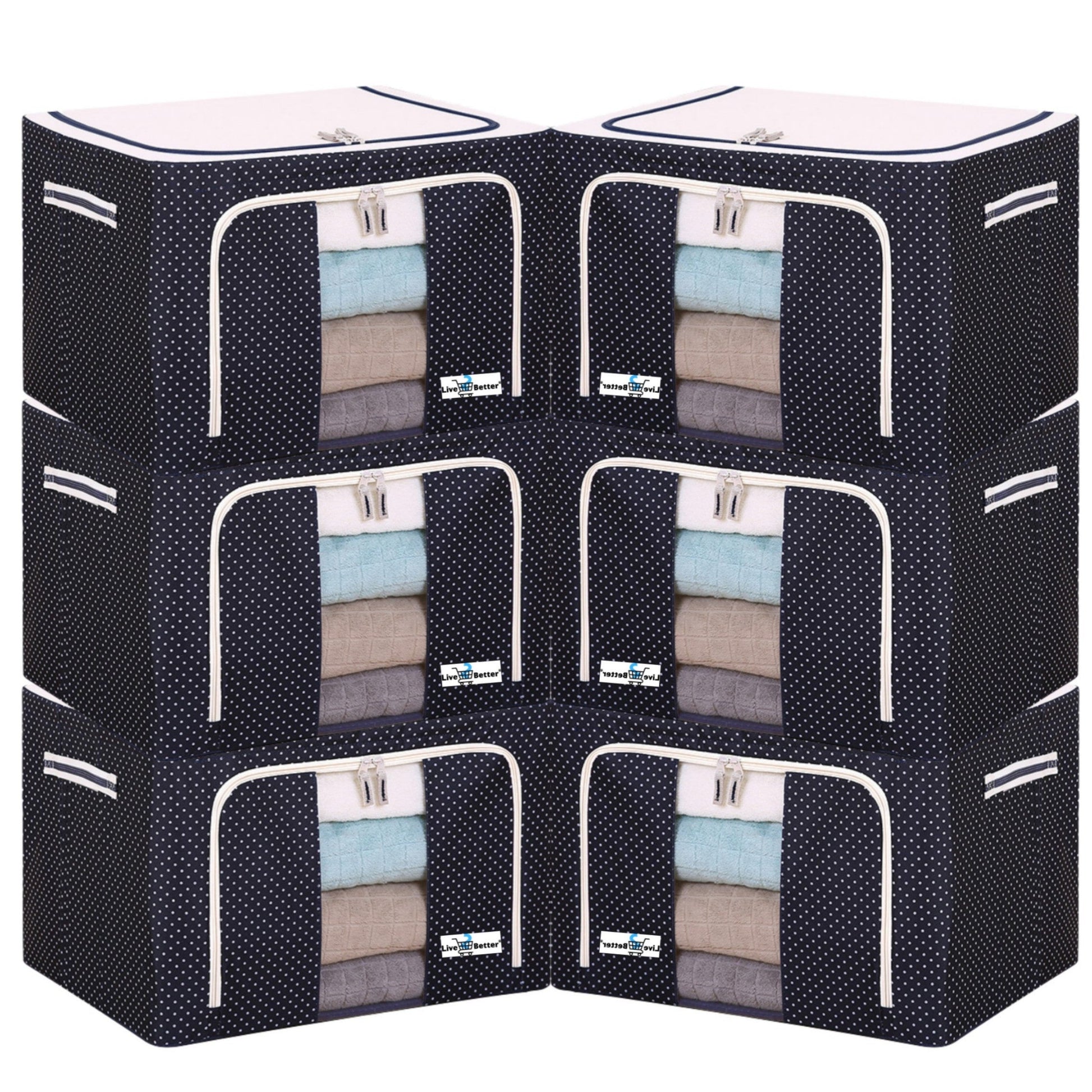 - With the sturdy steel frame structure, stack cloth boxes together.