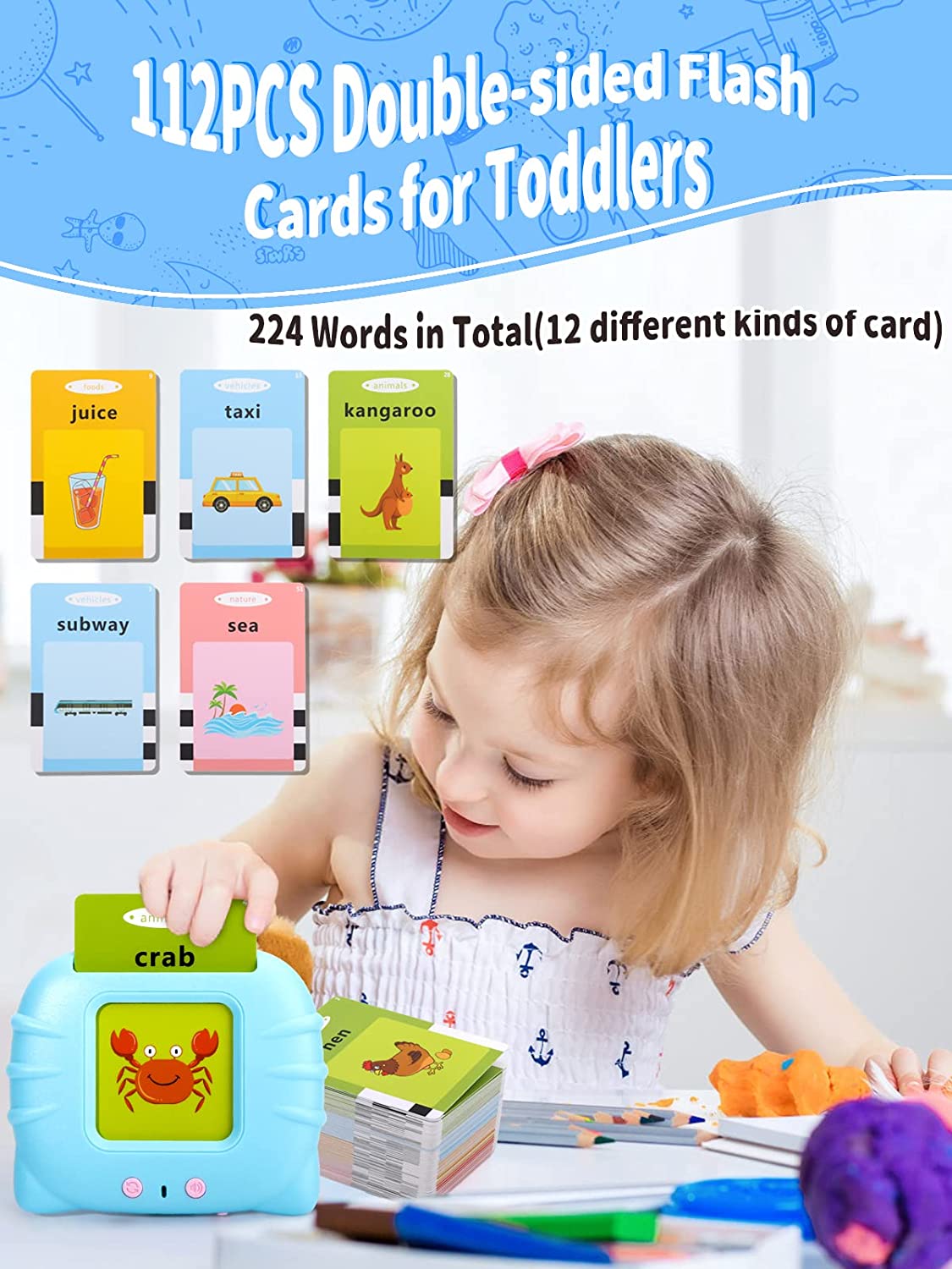 What you get : 1 Blue Toddler Learning Toys, 224 Words in Flash Cards, 1 USB Cable, 1 User Manual.