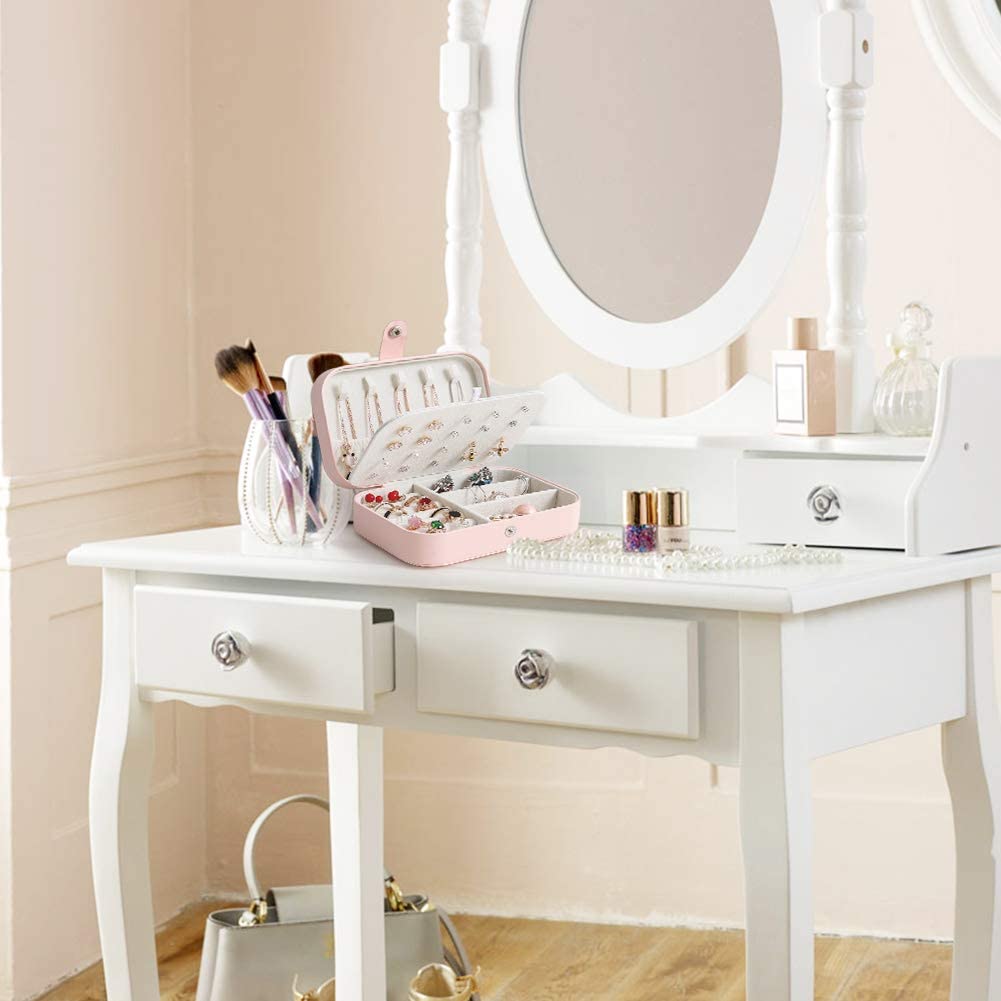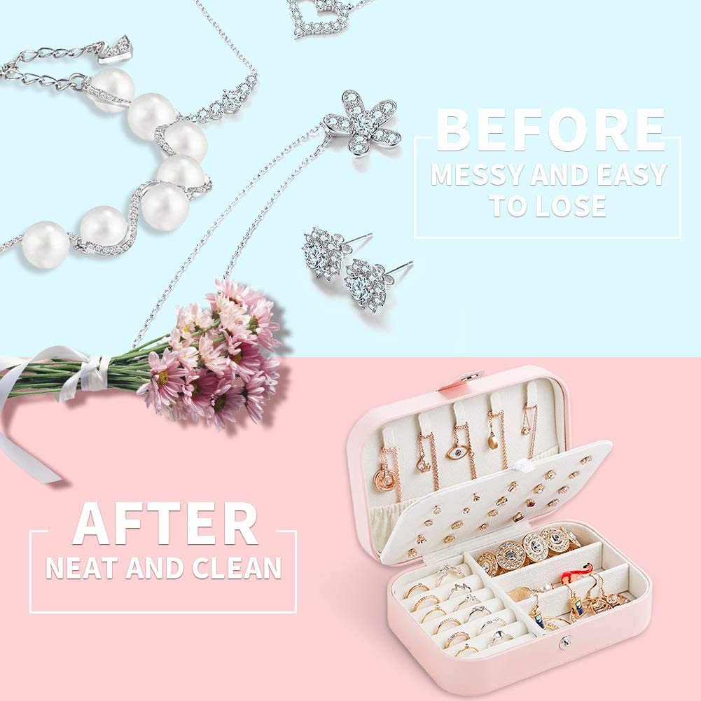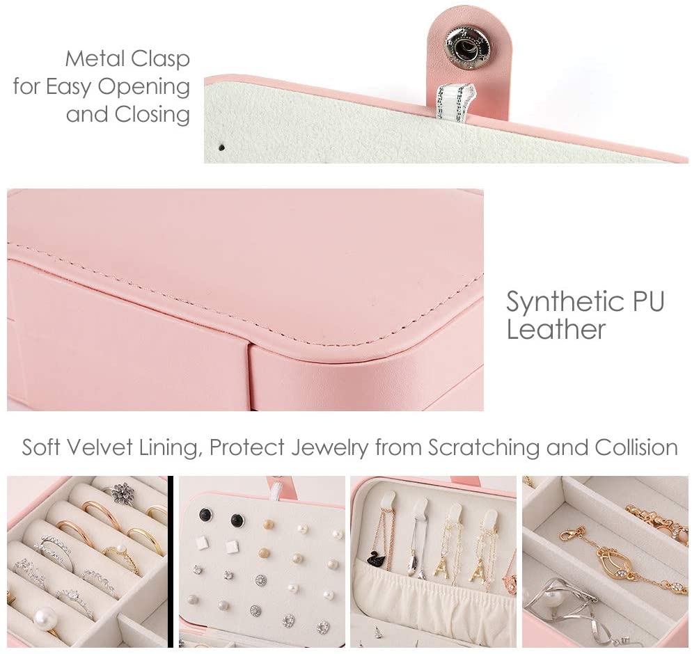 - This small jewelry box has double layer, provides earrings panel, necklace strap, ring groove and adjustable storage space to store your different jewelry accessories