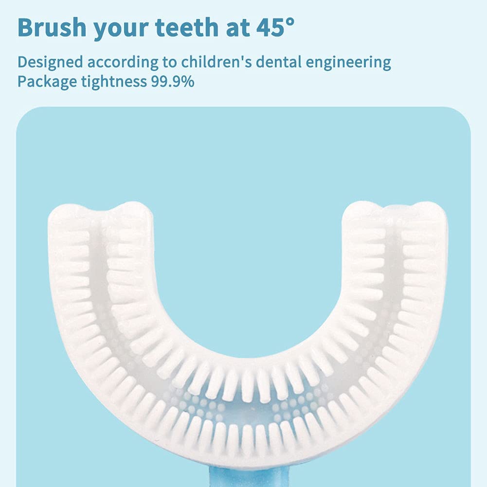 - Useful U-shaped brush head: the soft U-shaped brush head of toothbrush is made of quality silicone, which can brush and clean the teeth in 360 degrees, especially designed for children's tender and sensitive teeth.