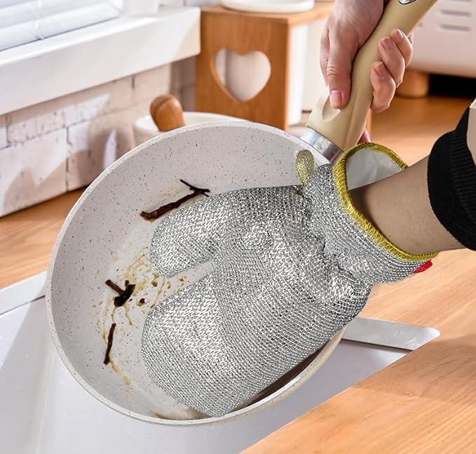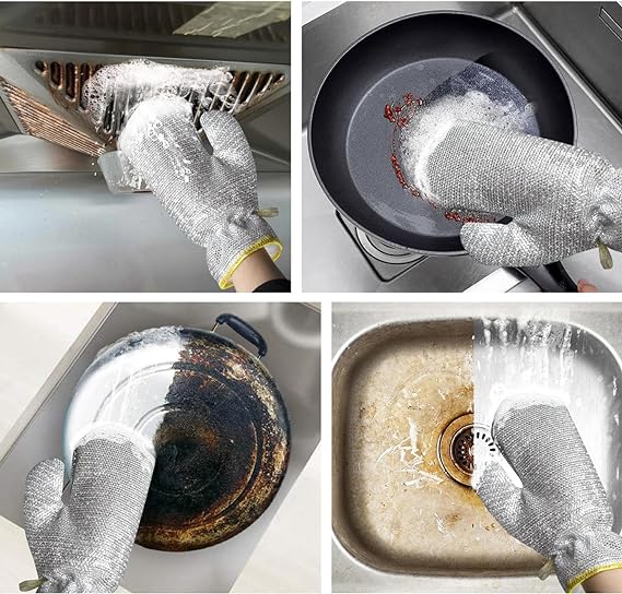 - 【Extensive Applications】Our All-Purpose Wire Cleaning Gloves Is Durable,for Wipe Kitchenware, Cleaning Counters Scrubs & Cleans for Dishes, Sinks, Stove Tops, Stainless Steel, Furniture,pool maintenance,bathroom,Etc.