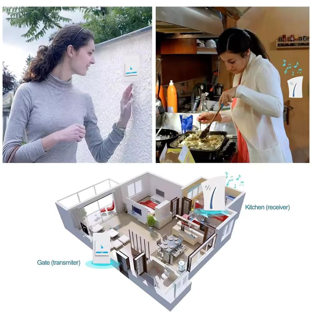 - Complete Doorbell Kit: Includes a wireless doorbell receiver, push-button transmitter, and battery pack for a complete solution right out of the box.